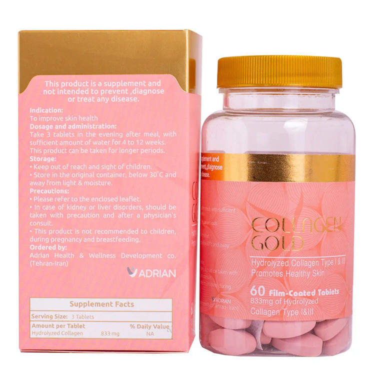قرص ضد چروک و جوان کننده کلاژن گلد شرکت توسعه طب آدریان بسته 60 عددی