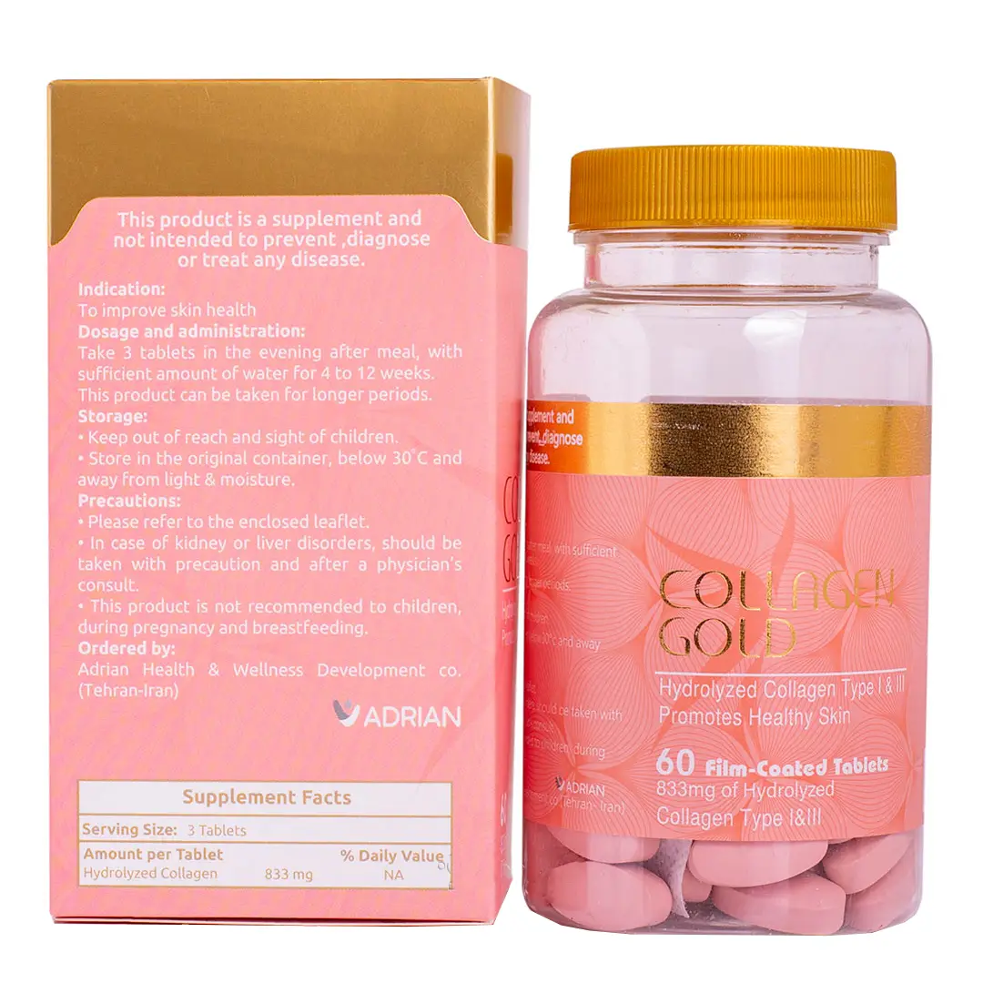 ناموجودقرص ضد چروک و جوان کننده کلاژن گلد شرکت توسعه طب آدریان بسته 60 عددی